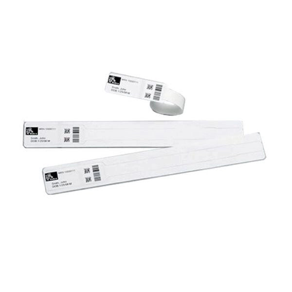 Pulsera de polipropileno de 1 x 7 pulgadas (25,4 x 177,8 mm); impresión térmica directa, Z-Band Direct, cierre adhesivo, cartucho, 300/rollo, 6/caja.