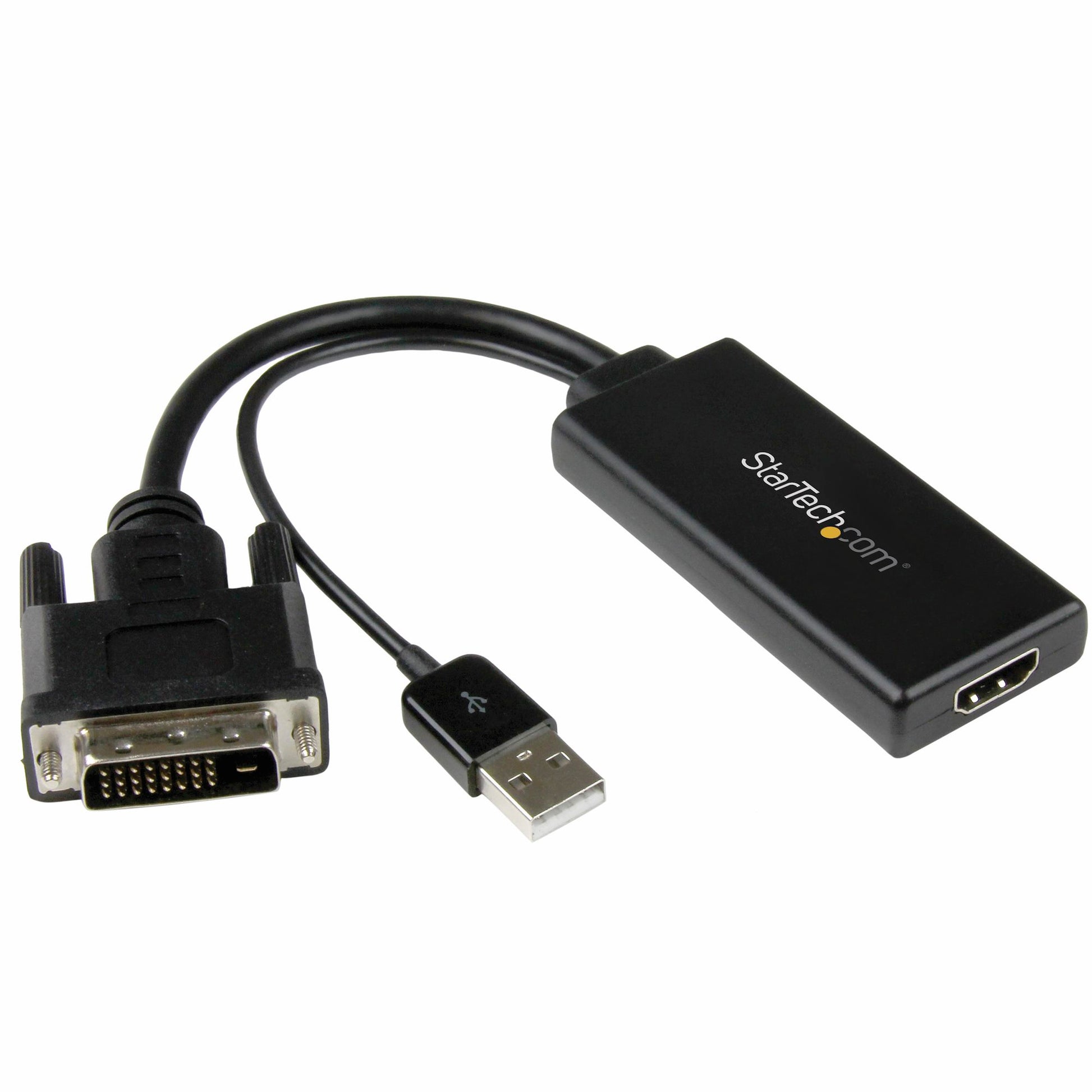 StarTech.com Adaptador de Vídeo DVI a HDMI con Alimentación USB y Audio - 1080p - Convertidor DVI-D