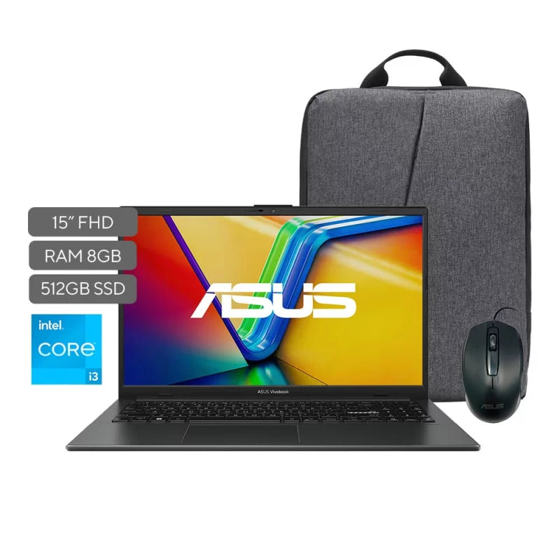 ASUS Consumo Vivobook Go 15 E1504GA-NJ531W|Procesador: Intel® Core™ i3-N305 Processor 1.8 GHz (6MB Cache, up to 3.8 GHz, 8 cores, 8 Threads)|Pantalla: 15,6"FHD (1920 x 1080) 16:9 Anti-glare|Memoria: 8GB DDR4 on board|Almacenamiento : 512GB M.2 NVMe™ PCIe® 4.0 SSD|Cámara WEB Frontal: 720p HD camera|Conectividad: Wi-Fi 6E (802.11ax) (Dual band) 1*1 + Bluetooth® 5.3 Wireless Card|Lector de huella: SI|Unidad Óptica: No trae| Teclado tipo: Chiclet Keyboard - numeric keyboard|Sistema Operativo: Windows 11 Home| 1,63 Kg |Color: Cool Silver|Accesorios: Ratón óptico con cable (USB),Maleta|Material LCD Cover: Plastic|Ranuras Expansión (incluye el utilizado): 1x M.2 2280 PCIe 3.0x2 (SSD SKU only)|US MIL-STD 810H military-grade|Bisagra : 180°|Cancelacion de ruido con IA ASUS Garantía: 1 año a través de los Centros de Servicio autorizados por la marca.